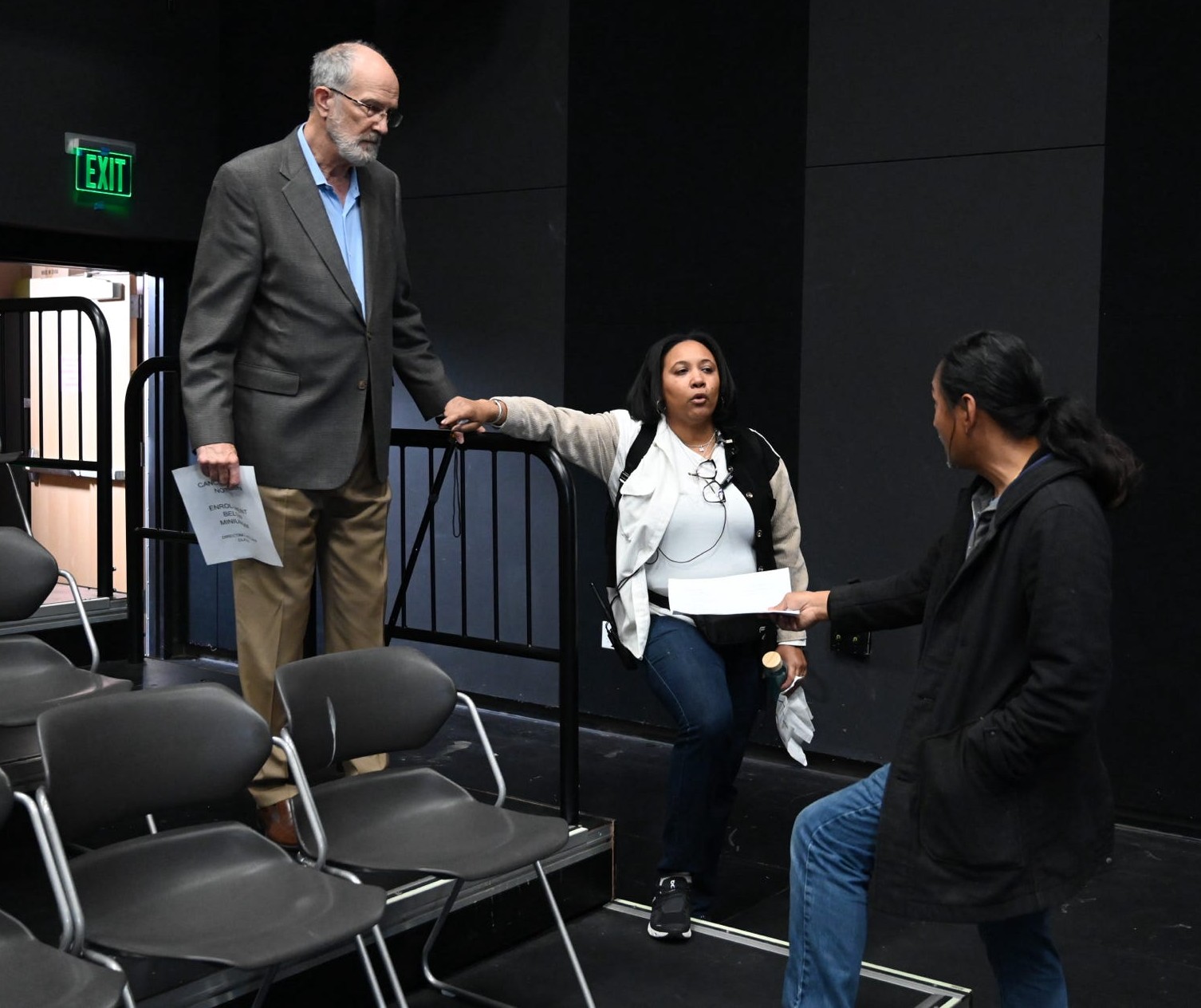 "With an amazing voice production, the actors elicited a range of emotions from the audience. Especially the dramatic scenes that included Prince Hamlet encountering the ghost of his father" (ghost played by Bill Brobeck).